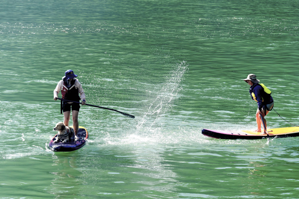 10月4日,游客在云南大理南澗彝族自治縣公郎鎮(zhèn)猛龍渡體驗(yàn)槳板。 新華社發(fā)(適志宏攝)