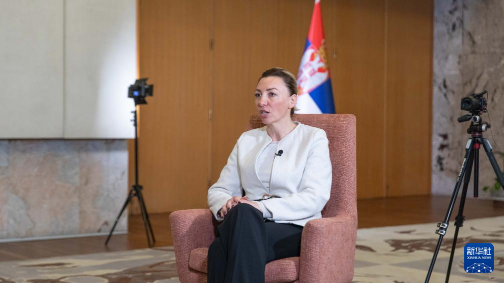 10月2日,塞爾維亞負(fù)責(zé)性別平等、防止針對婦女的暴力以及婦女經(jīng)濟(jì)和政治賦權(quán)事務(wù)的不管部長塔季揚(yáng)娜·馬楚拉在塞爾維亞首都貝爾格萊德接受新華社記者專訪。新華社發(fā)(王韡攝)