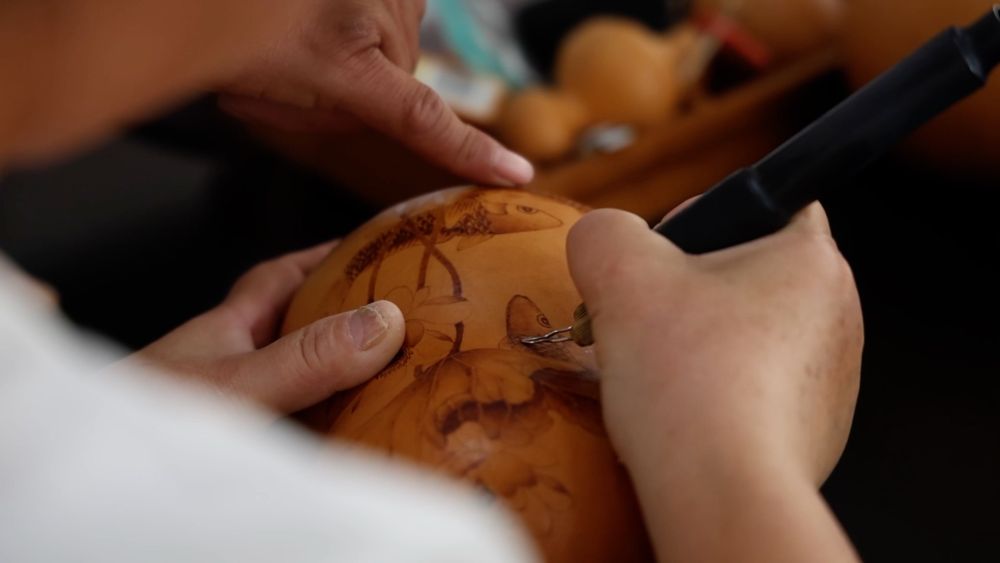 金秋10月,天津市濱海新區(qū)太平鎮(zhèn)的田野間,連片葫蘆地迎來豐收。在太平葫蘆特色產(chǎn)業(yè)園加工車間,工匠們以鐵為筆,在葫蘆上勾勒出精細(xì)的山水、花鳥或福祿圖案。經(jīng)過打磨、烙畫、拋光等工序,普通葫蘆價值得到大幅提升。