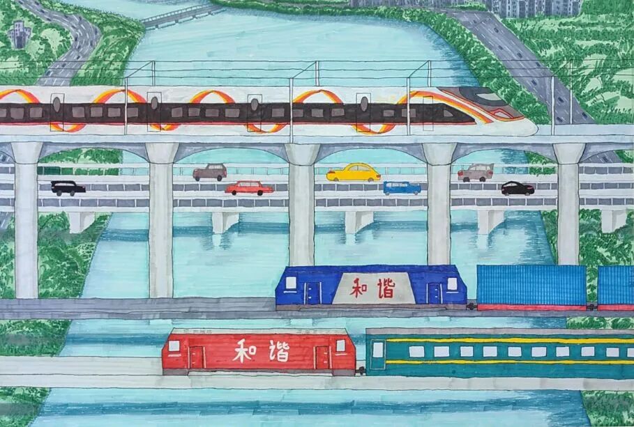現(xiàn)在我坐在復(fù)興號(hào)里,看電子屏上顯示列車(chē)時(shí)速達(dá)到350公里,青檀樹(shù)在窗外連成流動(dòng)的綠瀑。乘務(wù)員推著餐車(chē)經(jīng)過(guò),玻璃幕墻外閃過(guò)曲阜孔廟的金色鴟吻。包里裝著曾曾祖父的鐵路修建圖影印件,那些泛黃的等高線正被新時(shí)代的測(cè)繪儀重新勾勒。