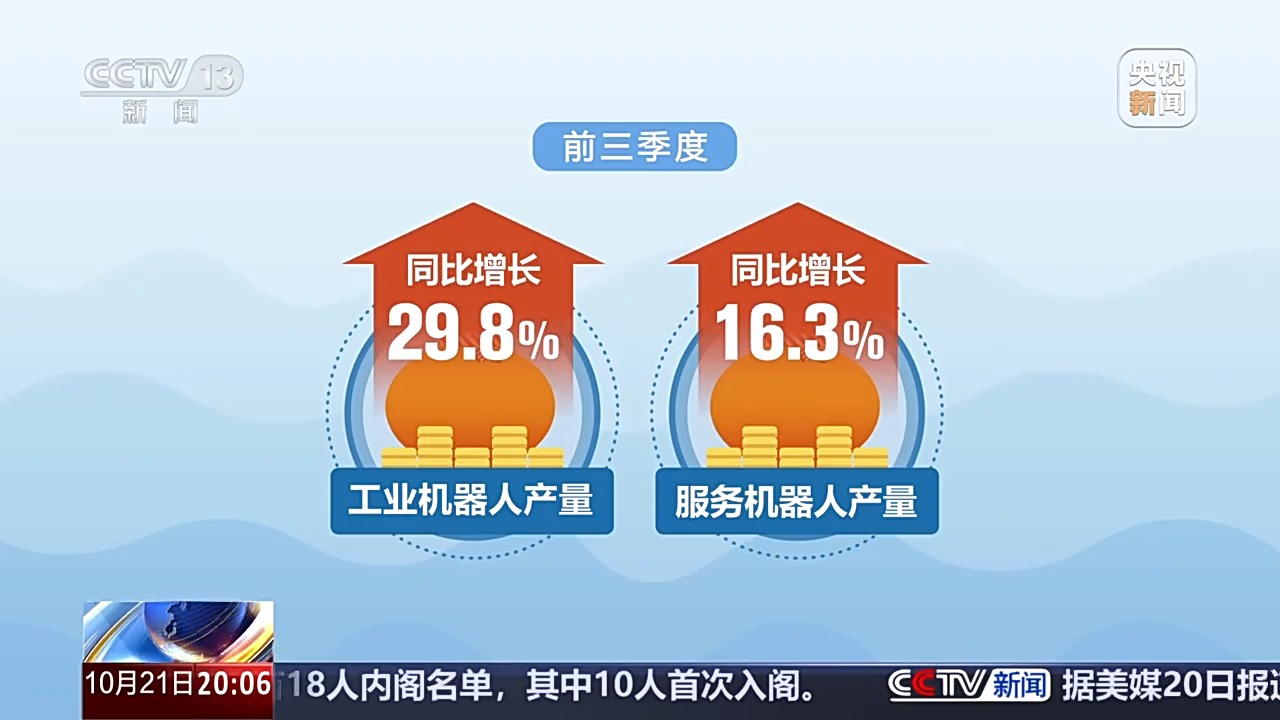第三季度,我國規(guī)模以上高技術(shù)制造業(yè)增加值同比增速明顯快于全部工業(yè);信息傳輸、軟件和信息技術(shù)服務(wù)業(yè)增加值增長11.7%,比上年同期加快1.7個(gè)百分點(diǎn)。前三季度,規(guī)模以上高技術(shù)制造業(yè)增加值同比增長9.6%;工業(yè)機(jī)器人、服務(wù)機(jī)器人等產(chǎn)品產(chǎn)量分別增長29.8%、16.3%。