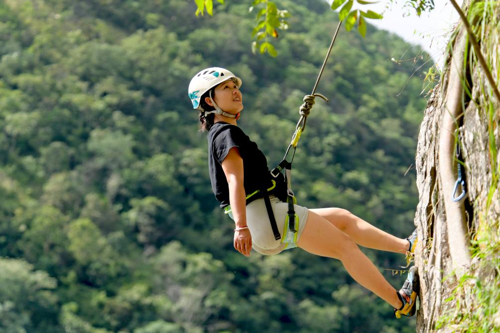 10月4日,游客在云南大理南澗彝族自治縣公郎鎮(zhèn)猛龍渡體驗(yàn)“攀巖”運(yùn)動。新華社發(fā)(適志宏 攝)
