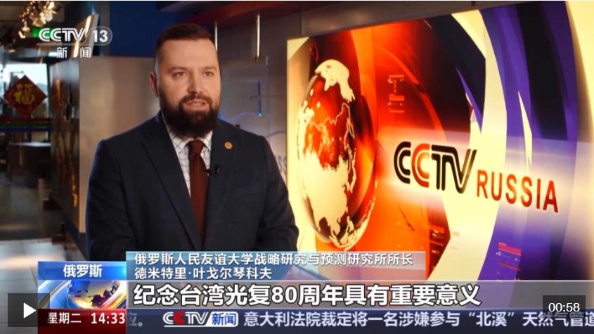 俄羅斯人民友誼大學(xué)戰(zhàn)略研究與預(yù)測(cè)研究所所長(zhǎng) 德米特里·葉戈?duì)柷倏品颍杭o(jì)念臺(tái)灣光復(fù)80周年具有重要意義,象征著中國(guó)人民心向統(tǒng)一。戰(zhàn)勝日本軍國(guó)主義是世界反法西斯戰(zhàn)爭(zhēng)的重要組成部分,這一歷史應(yīng)該被銘記?! ?img alt="" src="http://resource.sjzdaily.com.cn/files/Resource/phpad/images/2510/28/1949157733906719.jpg" />