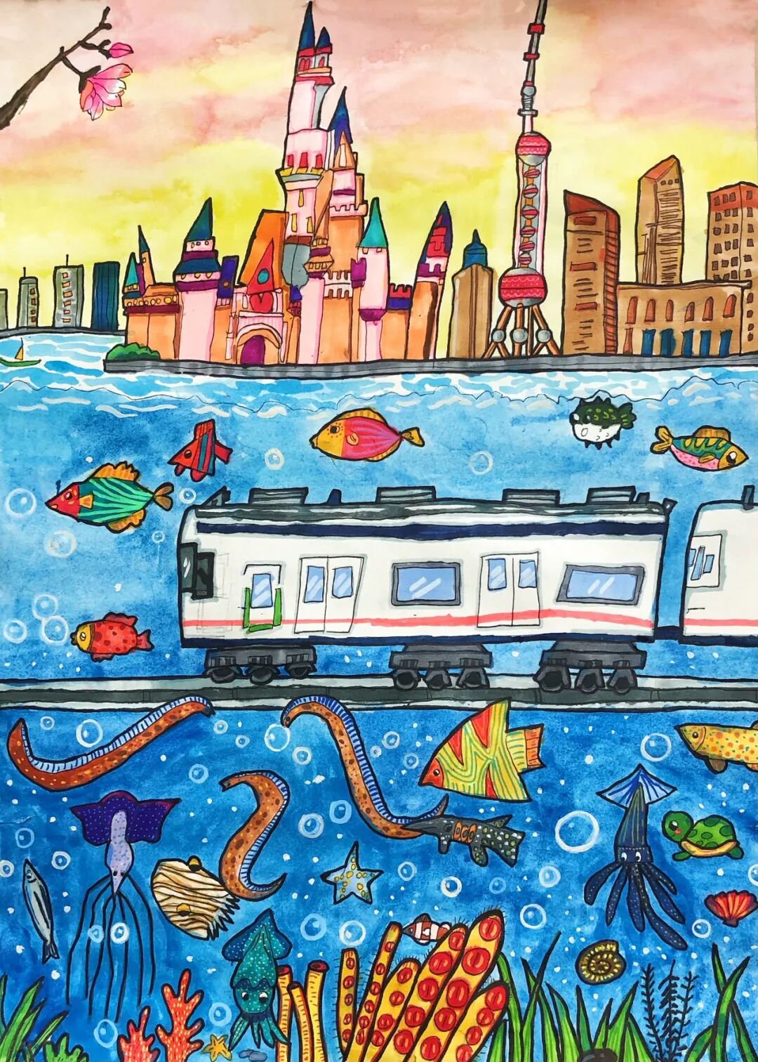 不遠(yuǎn)處徐鹽高鐵上,銀白色的高鐵像一道流星劃過(guò)水鄉(xiāng)。我的鉛筆在本子上沙沙作響,把窗外的景色畫下來(lái):成片的藕田里,粉白的荷花搖曳生姿;戴著斗笠的農(nóng)民在稻田里忙碌,身后的水渠泛著粼粼波光。列車員阿姨推著小推車走來(lái),“瓜子飲料礦泉水”的吆喝聲,和車輪與鋼軌的碰撞聲交織在一起,成為獨(dú)屬于旅途的音樂(lè)。