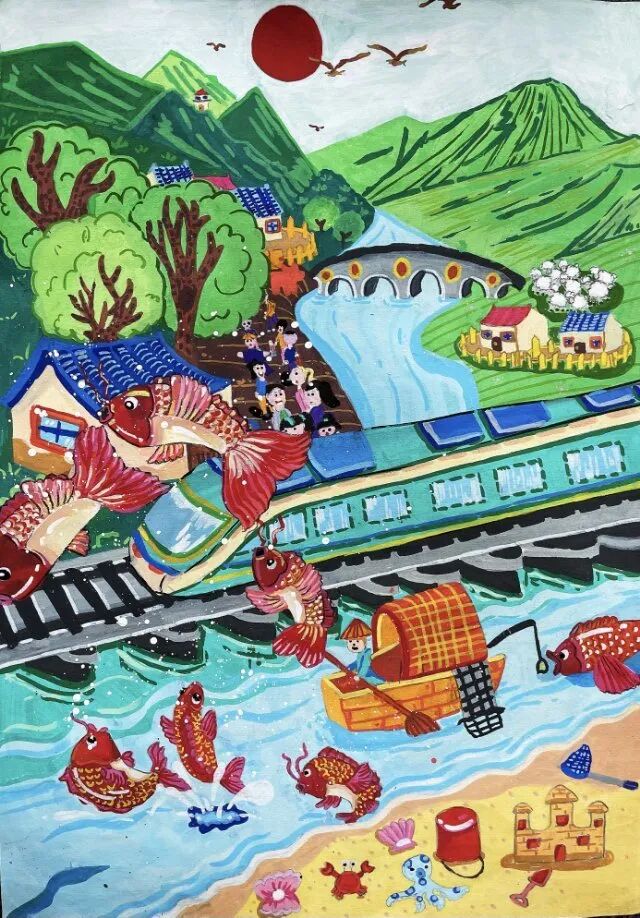 坐在大爺爺?shù)碾妱?dòng)車上,晚風(fēng)帶著九龍口的荷香拂過(guò)臉頰。我突然明白,鐵路不僅是連接城市的軌道,更是建湖通向世界的彩虹橋。那些飛馳的列車,載著水鄉(xiāng)兒女的夢(mèng)想,也載著我們國(guó)家日新月異的變化。我的小本子里,又多了一張車票,它像一顆小星星,照亮我心里對(duì)家鄉(xiāng)的愛,也照亮了我繼續(xù)探索遠(yuǎn)方的路。