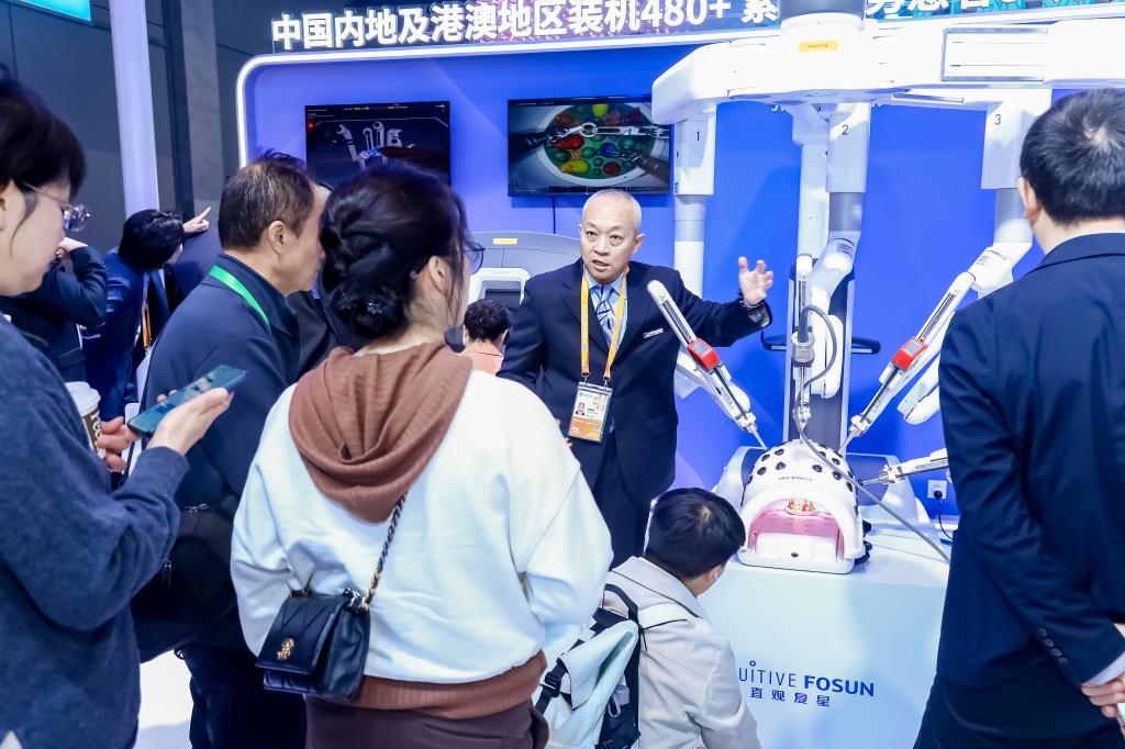 手術機器人是各家跨國醫(yī)療行業(yè)企業(yè)展示數(shù)智創(chuàng)新、產(chǎn)業(yè)協(xié)作的重頭戲。作為每年醫(yī)療展區(qū)的“明星展品”,八赴進博的達芬奇手術機器人今年首次集齊“全家?!薄?/p>