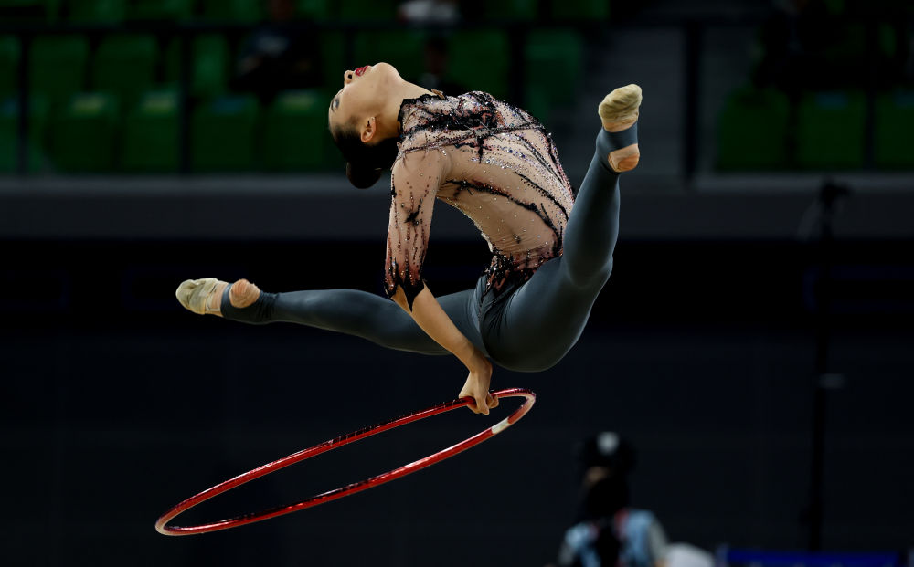 11月10日,陜西隊選手王子露在圈操比賽中。新華社記者 毛思倩 攝