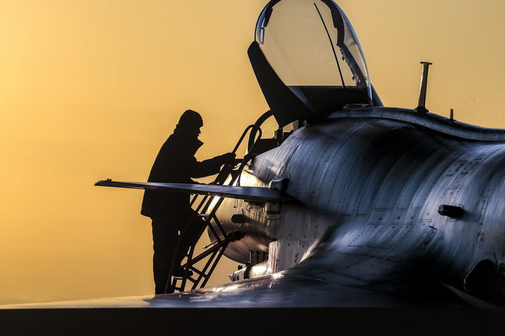 朝陽從地平線躍起,晨曦照耀著列隊行進的飛行員們,一次新的起飛即將來臨。