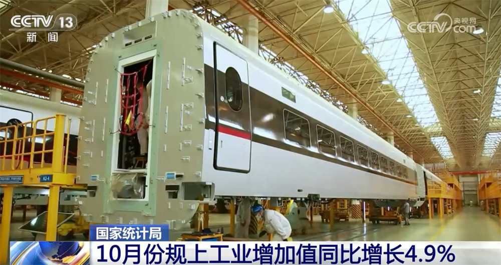 工業(yè)生產(chǎn)總體穩(wěn)定,10月份規(guī)模以上工業(yè)增加值同比增長4.9%,繼續(xù)保持總體穩(wěn)定增長。其中,裝備制造業(yè)增加值增長8%,明顯快于規(guī)模以上工業(yè)增長,對規(guī)模以上工業(yè)增長支撐作用明顯。