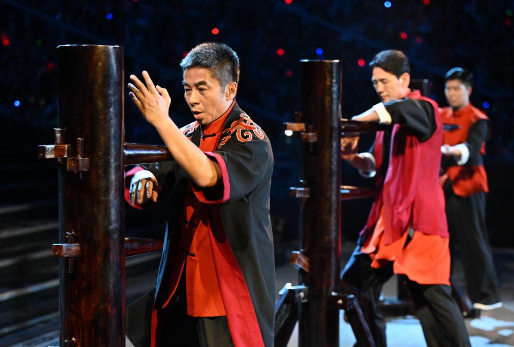 11月9日,演員在開幕式現(xiàn)場(chǎng)表演詠春拳。新華社記者肖藝九 攝