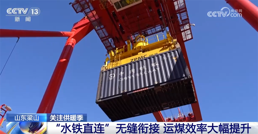 在現(xiàn)場(chǎng),大家可以看到大型起重機(jī)正在往船上裝集裝箱,這是今年港口新推出的一種“水鐵直連”的煤炭運(yùn)轉(zhuǎn)模式,就是把集裝箱的煤通過(guò)鐵路運(yùn)到這里,不再經(jīng)過(guò)卸煤和存儲(chǔ)的過(guò)程,而是通過(guò)精準(zhǔn)的需求調(diào)度把集裝箱直接裝船,通過(guò)運(yùn)河發(fā)往目的地。這種方式大幅縮短了煤炭運(yùn)輸?shù)闹芷冢颜麄€(gè)周期從5天縮短到3天,也提升了港口能源保障的效率和能力。