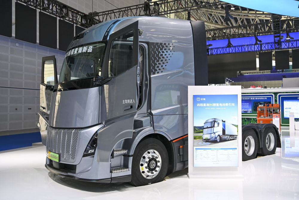 這是在2025年山西(太原)能源產(chǎn)業(yè)博覽會上展示的一款醇氫電動牽引車(9月27日攝)。新華社記者 楊晨光 攝