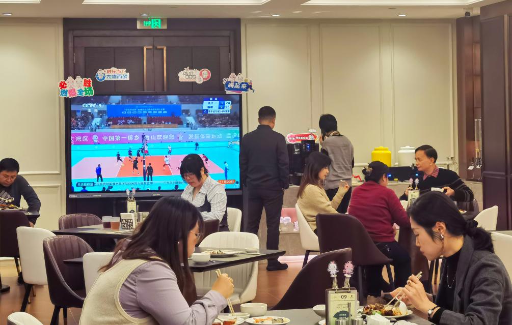 11月20日,游客在廣州一家餐廳內(nèi)用餐,一旁的電視正轉(zhuǎn)播全運(yùn)會比賽。新華社記者洪澤華 攝