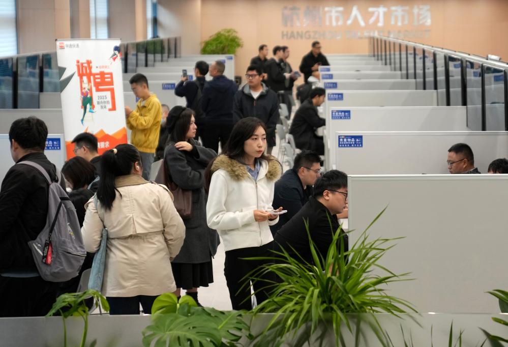 11月12日,“陽(yáng)光就業(yè),職為你來(lái)” 2025年杭州市總工會(huì)冬季專場(chǎng)招聘會(huì)現(xiàn)場(chǎng)。新華社記者 韓傳號(hào) 攝
