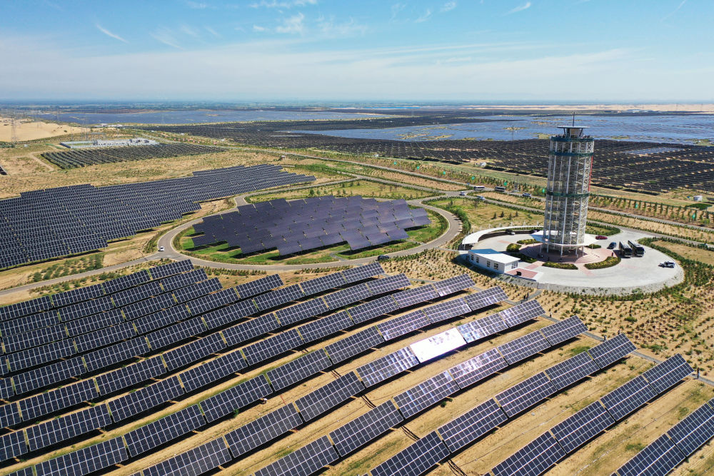 這是2025年7月30日拍攝的內(nèi)蒙古鄂爾多斯市達(dá)拉特旗光伏基地(無人機(jī)照片)。新華社記者 李志鵬 攝