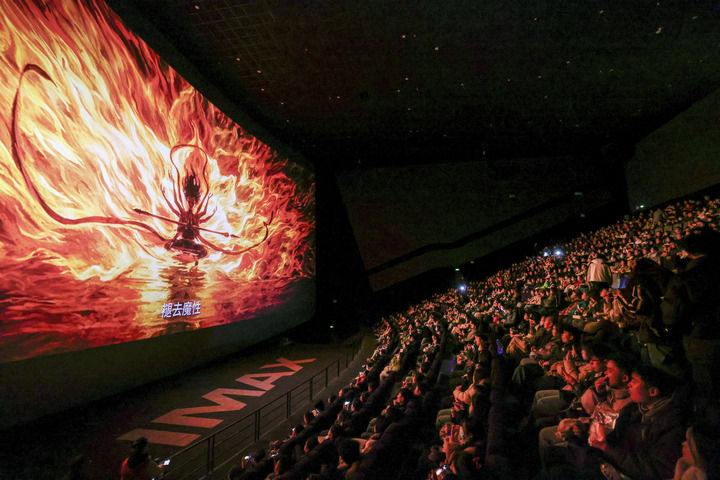 2025年2月25日,觀眾在貴州省貴陽市越界影城觀看電影《哪吒之魔童鬧?!?。該片打破了中國影史票房紀(jì)錄。新華社記者 歐東衢 攝