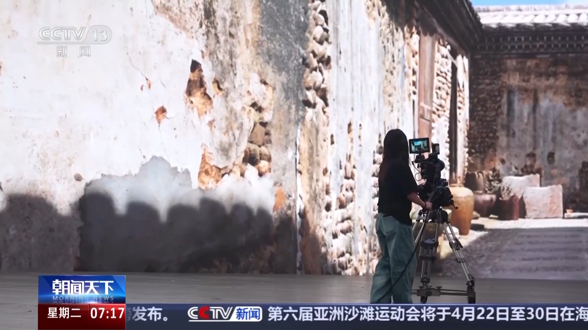 總臺央視記者 楊理天:這里是一座恐龍博物館,恐龍模型栩栩如生??铸埻蝗粡堥_大嘴,視覺效果非常震撼。不過,轉(zhuǎn)眼間,我就來到了故宮,下一秒,故宮飄起了雪花。地點(diǎn)一鍵切換,天氣瞬間變化,這就是最新的電影虛擬拍攝技術(shù)帶來的神奇體驗。