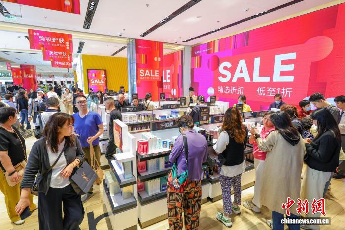 圖為元旦假期,cdf??趪H免稅城迎來購物熱潮,眾多游客前來選購心儀商品?!≈行戮W(wǎng)記者 駱云飛 攝