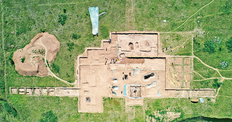 甘肅省隴南市禮縣一帶是早期秦文化發(fā)祥地,被譽(yù)為“秦人故里”。四角坪遺址位于禮縣四格子山頂部,是目前已發(fā)現(xiàn)的罕見的規(guī)模宏大、格局規(guī)整的秦代大型建筑群,體現(xiàn)了中國古代統(tǒng)一國家形成初期的風(fēng)格和氣魄,被評為2023年度全國十大考古新發(fā)現(xiàn)之一。圖為2022年6月10日拍攝的考古發(fā)掘現(xiàn)場。 新華社記者 陳斌/攝
