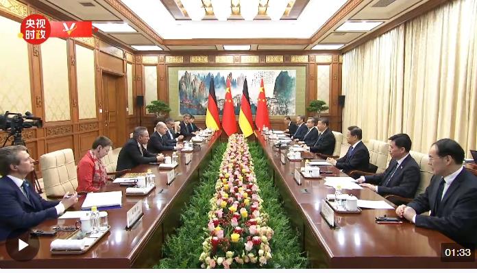 朔爾茨說:“主席先生,我很高興自2022年11月我上次來訪之后,兩國(guó)政府間進(jìn)行了深入的交流和多次對(duì)話。具有里程碑意義的是,去年六月在柏林成功召開的第七輪德中政府間磋商。在過去兩天我率領(lǐng)一個(gè)商務(wù)代表團(tuán),參觀了在重慶和上海的德國(guó)企業(yè),兩國(guó)的經(jīng)濟(jì)關(guān)系是非常重要的議題。”