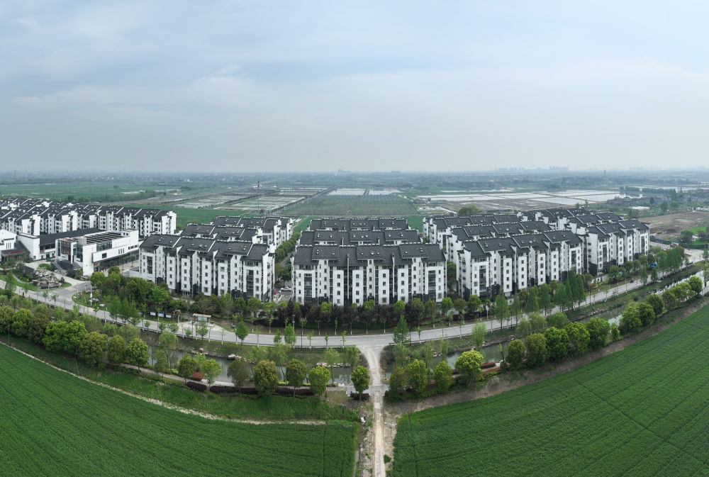 這是位于浙江省湖州市安置上岸漁民的義皋新村(2024年4月11日攝,無人機照片)。