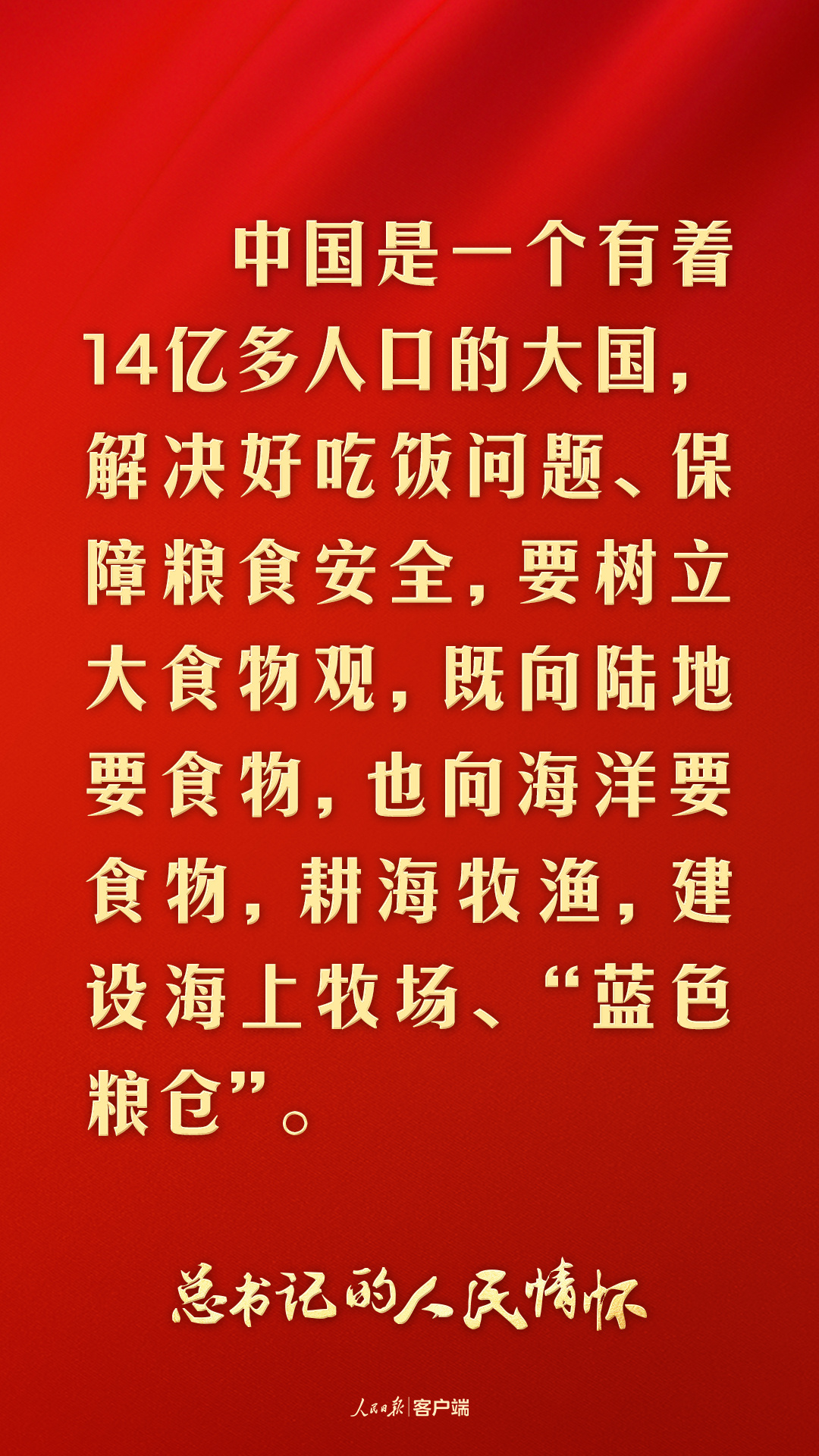 向江河湖海要食物。到廣東東海島上看海水養(yǎng)殖,習(xí)近平總書(shū)記強(qiáng)調(diào):“提高我們國(guó)民的身體素質(zhì),把水產(chǎn)搞上去,把蛋白質(zhì)搞上去很重要?!?/p>