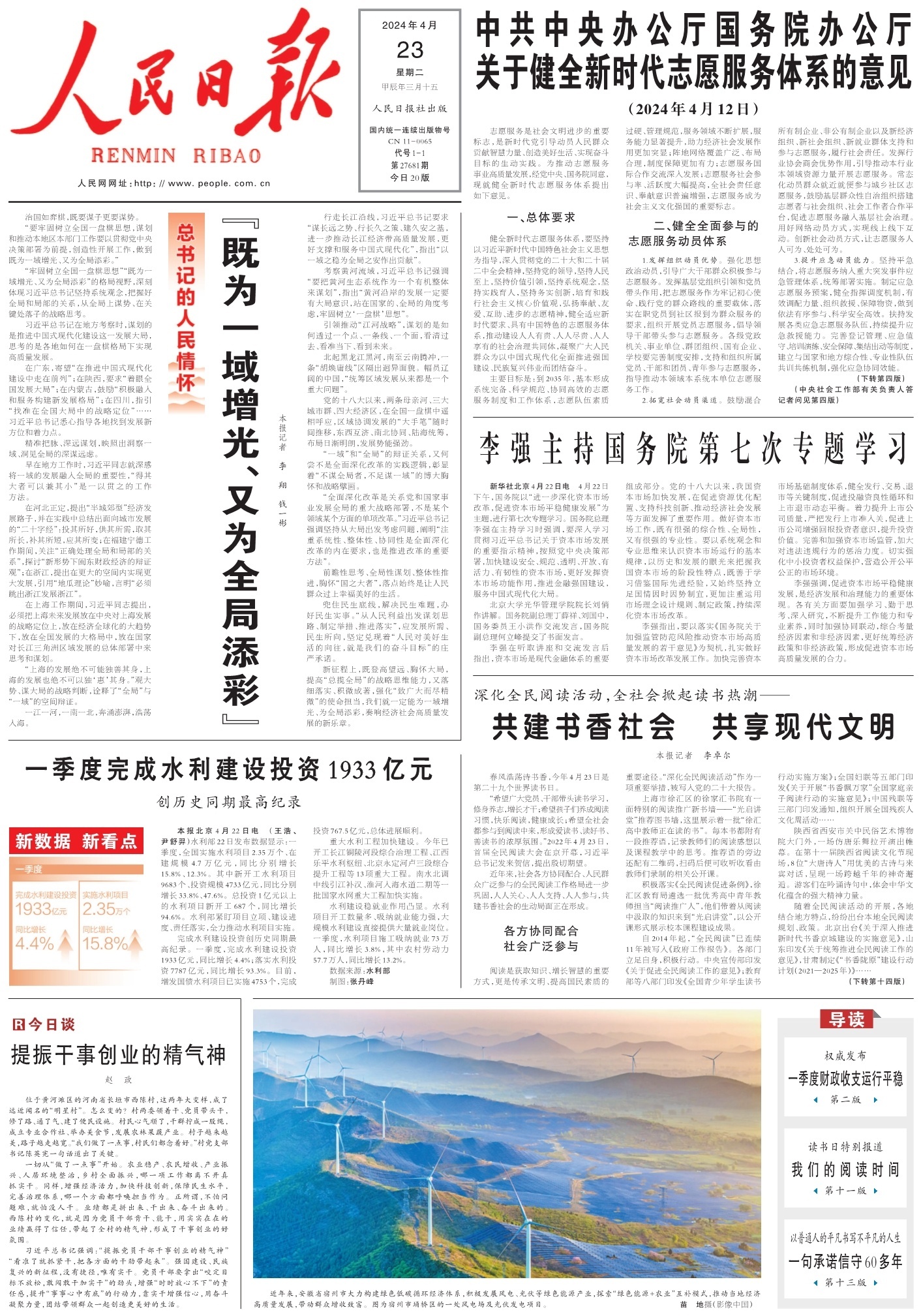 前瞻性思考、全局性謀劃、整體性推進(jìn),胸懷“國之大者”,落點(diǎn)始終是讓人民群眾過上幸福美好的生活。