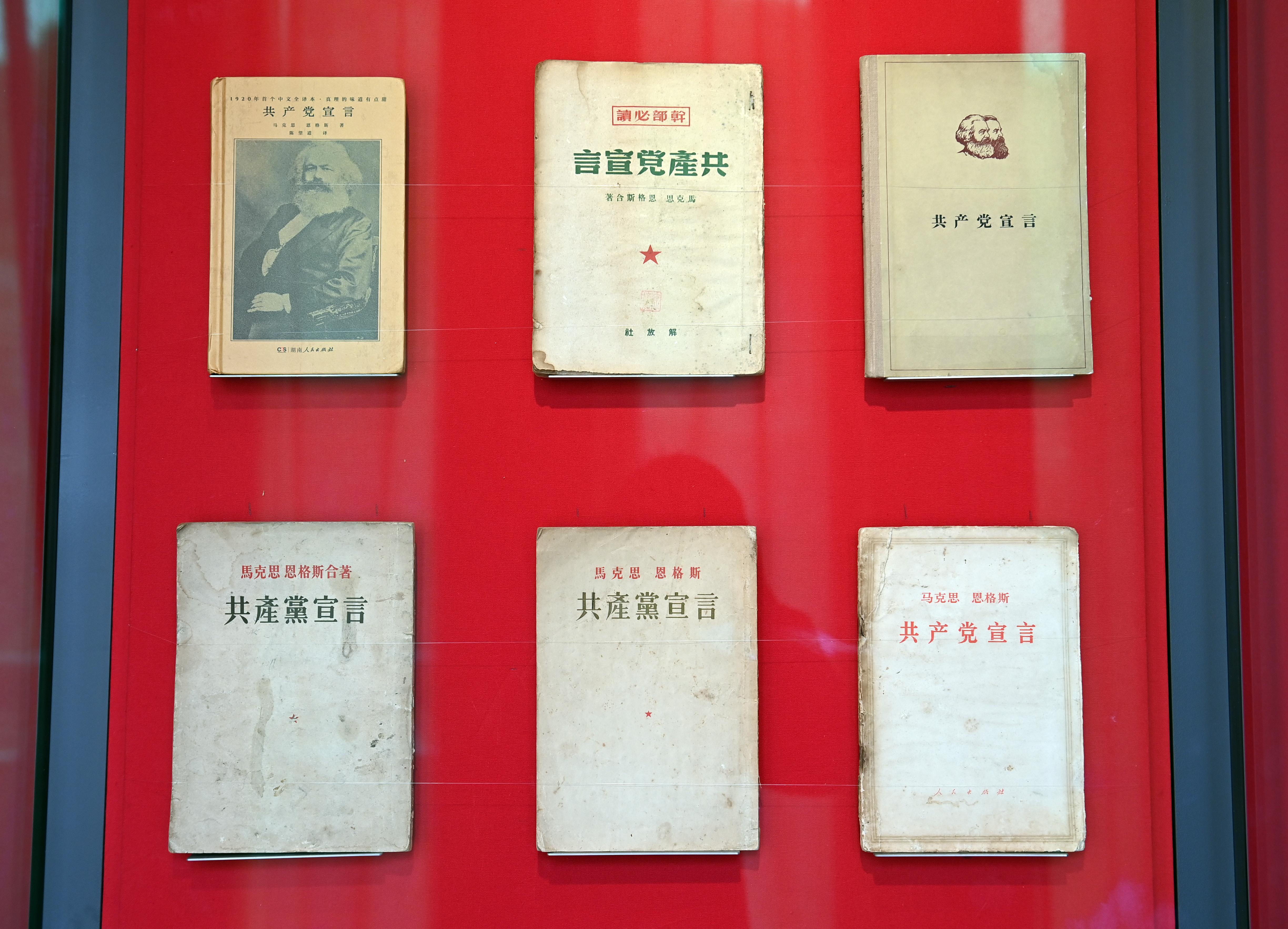 中國(guó)國(guó)家版本館中央總館展示的不同版本的《共產(chǎn)黨宣言》。