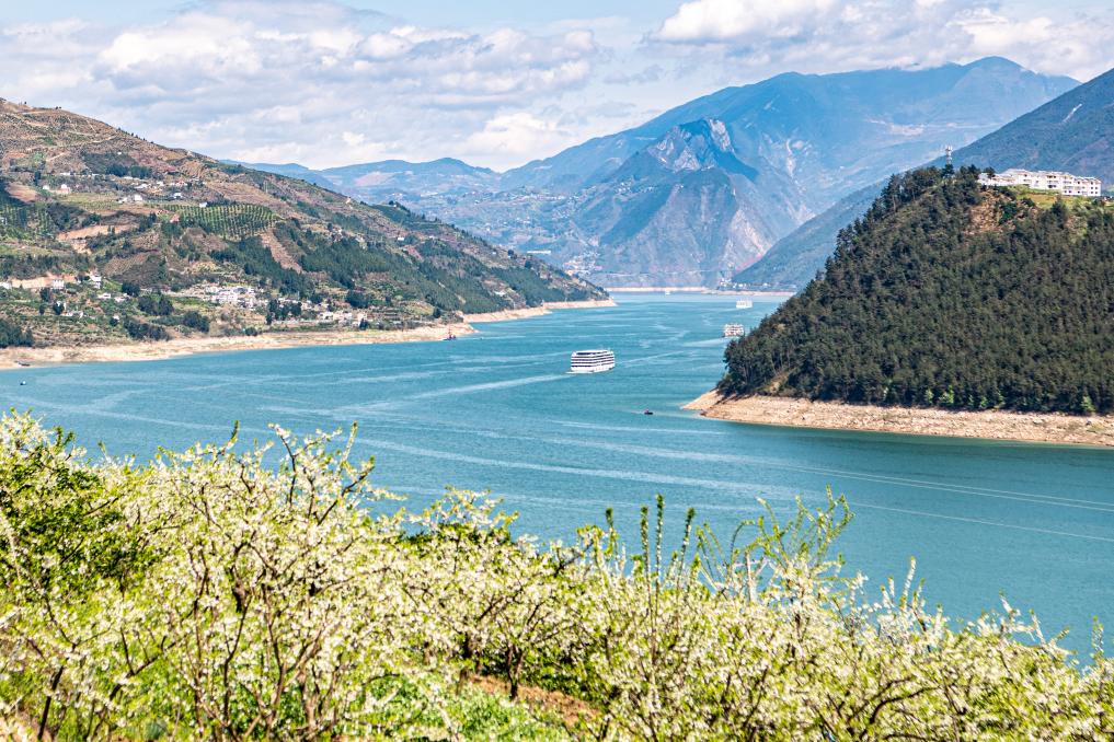 3月25日拍攝的重慶市巫山縣曲尺鄉(xiāng)長江兩岸的萬畝李花。新華社記者 唐奕 攝