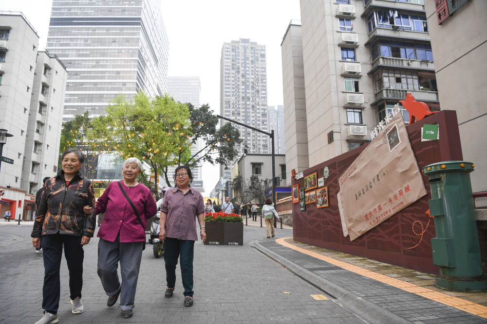 2024年4月22日,居民在重慶市九龍坡區(qū)謝家灣街道民主村社區(qū)內(nèi)散步。