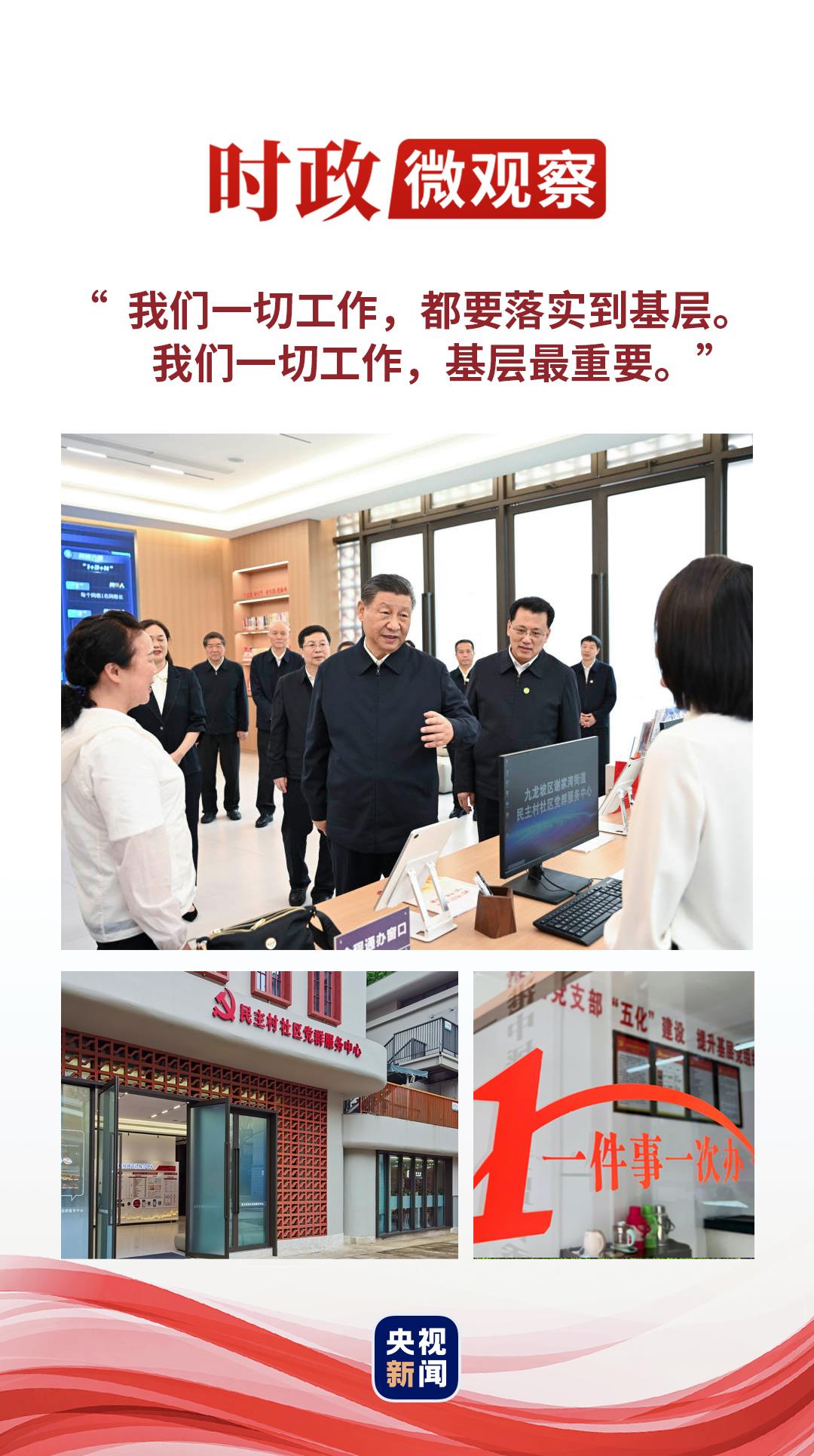 4月22日,正在重慶考察的習(xí)近平總書記來到九龍坡區(qū)謝家灣街道民主村社區(qū),走進社區(qū)黨群服務(wù)中心,向社區(qū)干部詢問這里都開展哪些便民服務(wù)、社區(qū)干部待遇怎么樣、平時工作忙不忙等,詳細了解近年來社區(qū)減負效果。