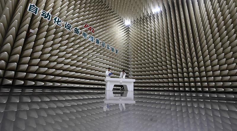 △2023年7月7日,在南瑞集團有限公司自動化設備電磁兼容實驗室,科研人員在進行輻射發(fā)射實驗準備工作。