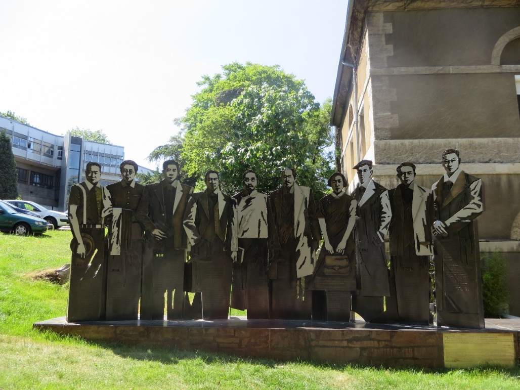 在里昂中法大學(xué)歷史博物館前方,屹立著廣州市政府贈(zèng)送的雕像。蔡元培、常書鴻等10位與里昂中法大學(xué)關(guān)系密切的中國(guó)學(xué)者眺望前方,注視著來(lái)來(lái)往往的留學(xué)生。