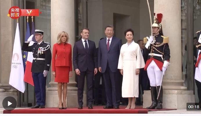 當?shù)貢r間5月6日下午,國家主席習(xí)近平和夫人彭麗媛乘車抵達愛麗舍宮。
