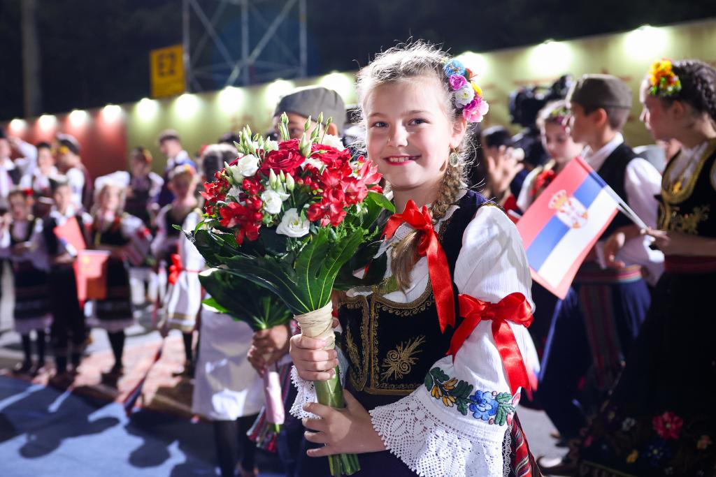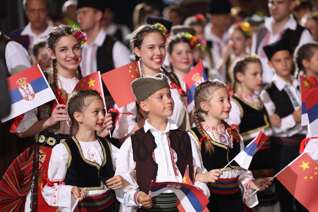 武契奇在機場為習(xí)近平舉行獨具特色的迎賓儀式。塞爾維亞少年兒童向習(xí)近平和彭麗媛獻花,揮舞中塞兩國國旗,身著民族盛裝的塞爾維亞民眾載歌載舞熱烈歡迎。