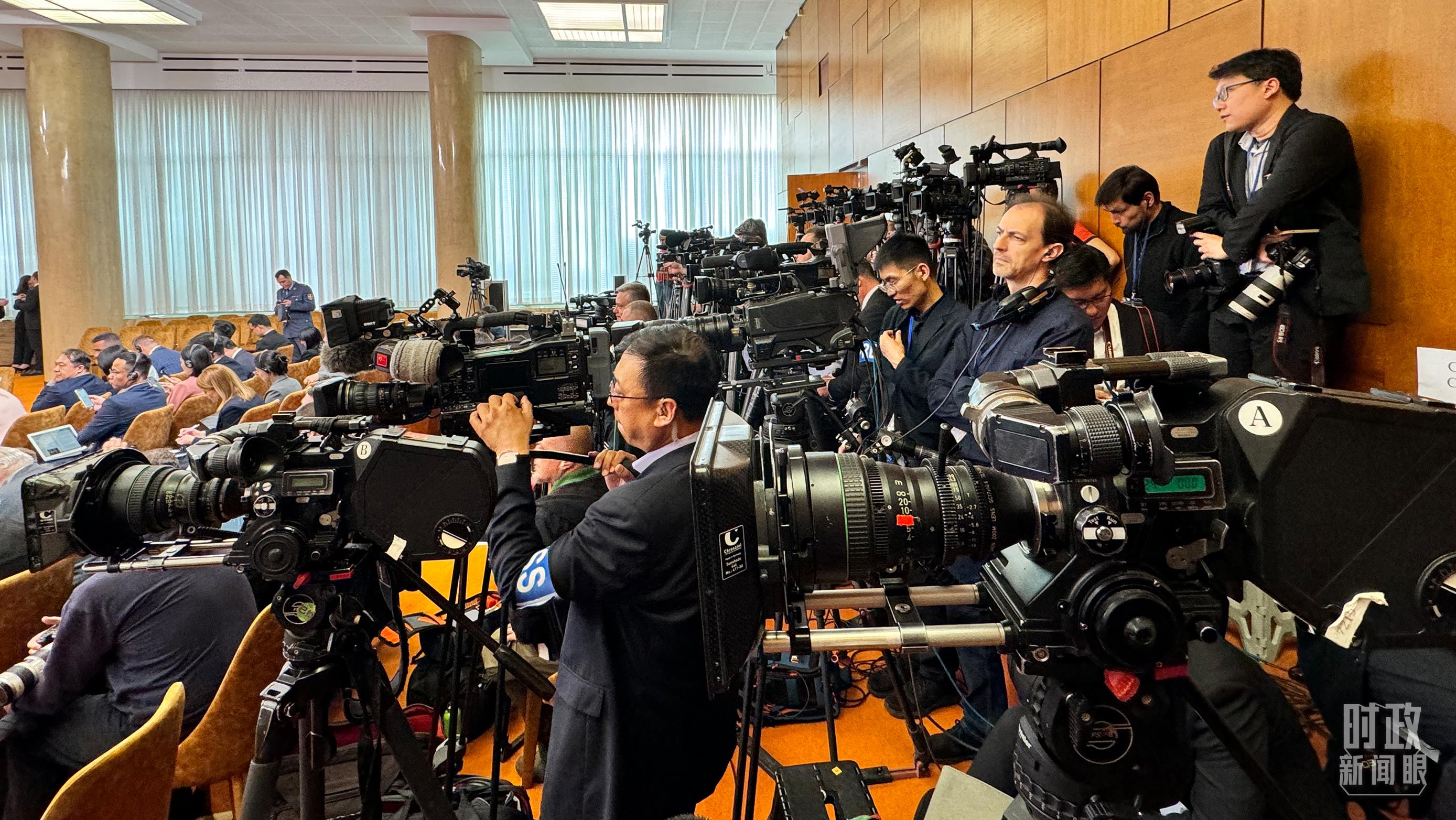 這是中塞兩國(guó)元首共見記者開始前的現(xiàn)場(chǎng),記者云集。(總臺(tái)央視記者李增仁拍攝)