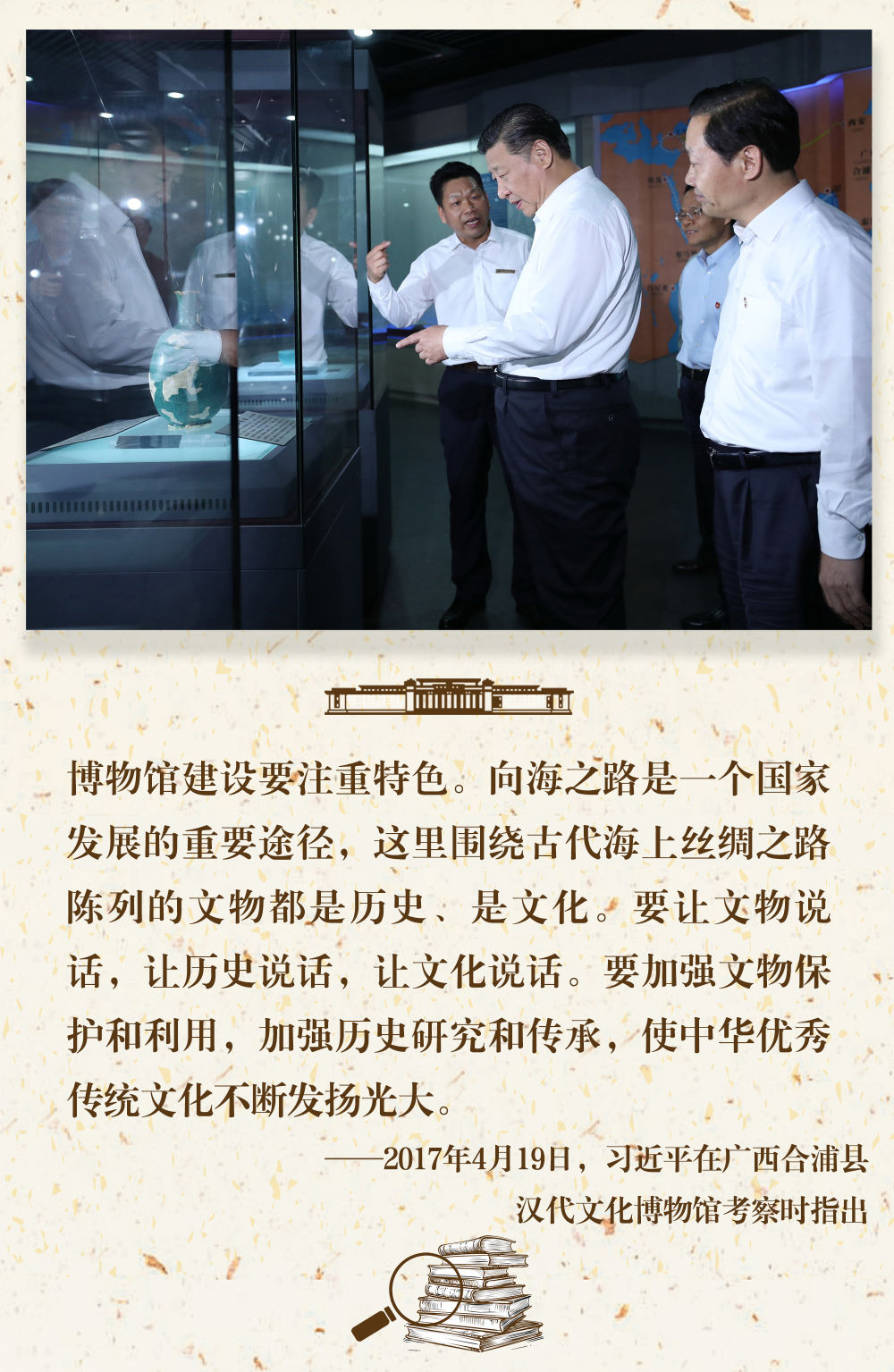 “一個博物館就是一所大學(xué)?!?。長期以來,習(xí)近平總書記十分關(guān)心博物館事業(yè)發(fā)展,多次在不同場合對發(fā)揮好博物館相關(guān)功能提出要求。
