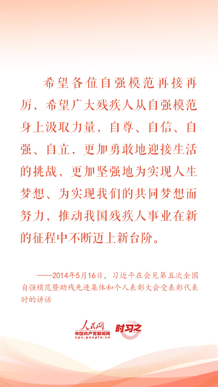 2024年5月19日是第三十四次全國助殘日。對于殘疾人這個(gè)特殊群體,習(xí)近平總書記始終格外關(guān)心、格外關(guān)注,在不同場合頻頻為他們加油鼓勁,勉勵(lì)他們活出精彩的人生。