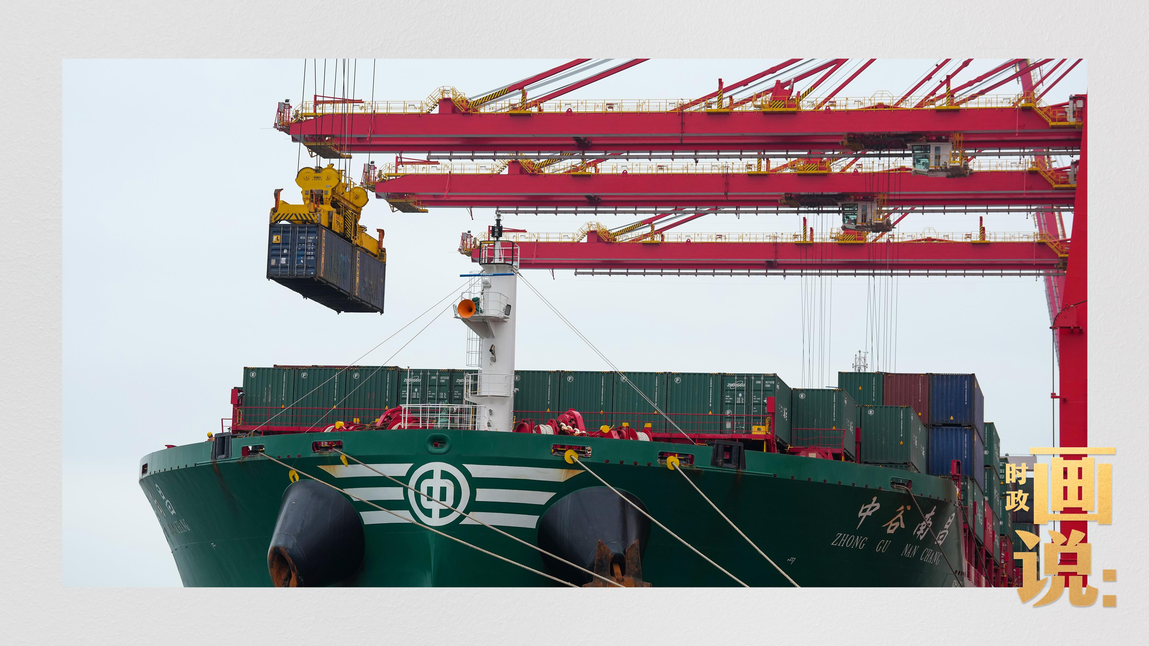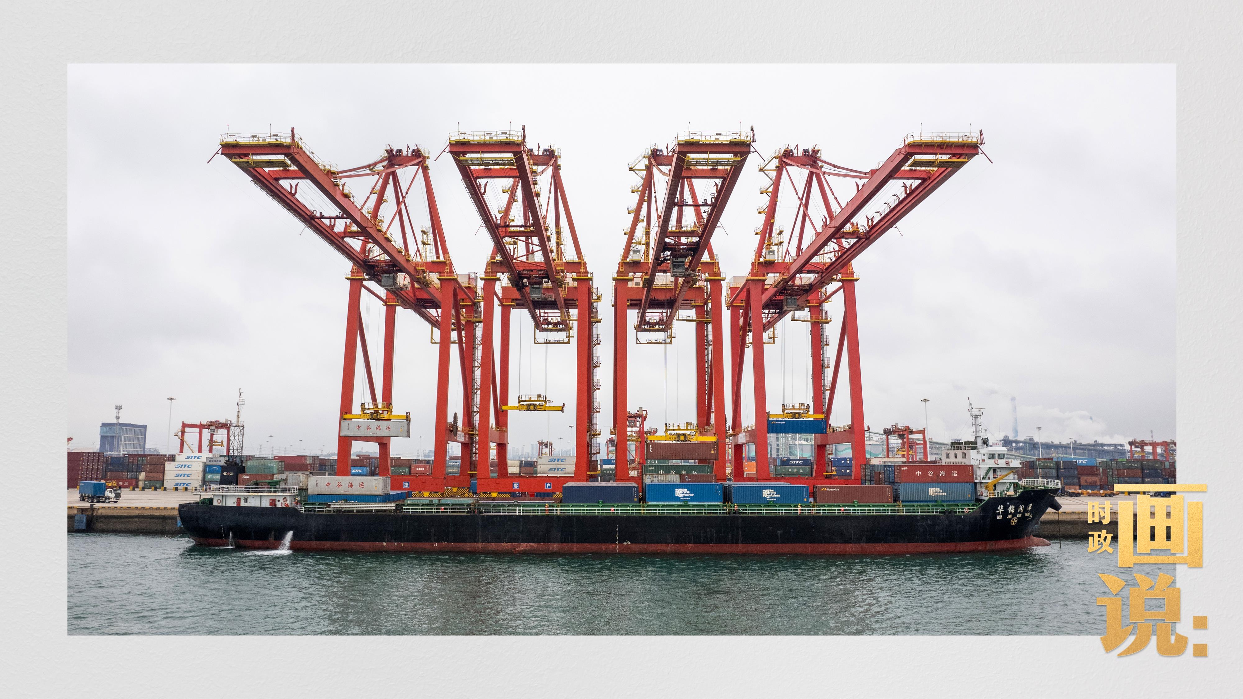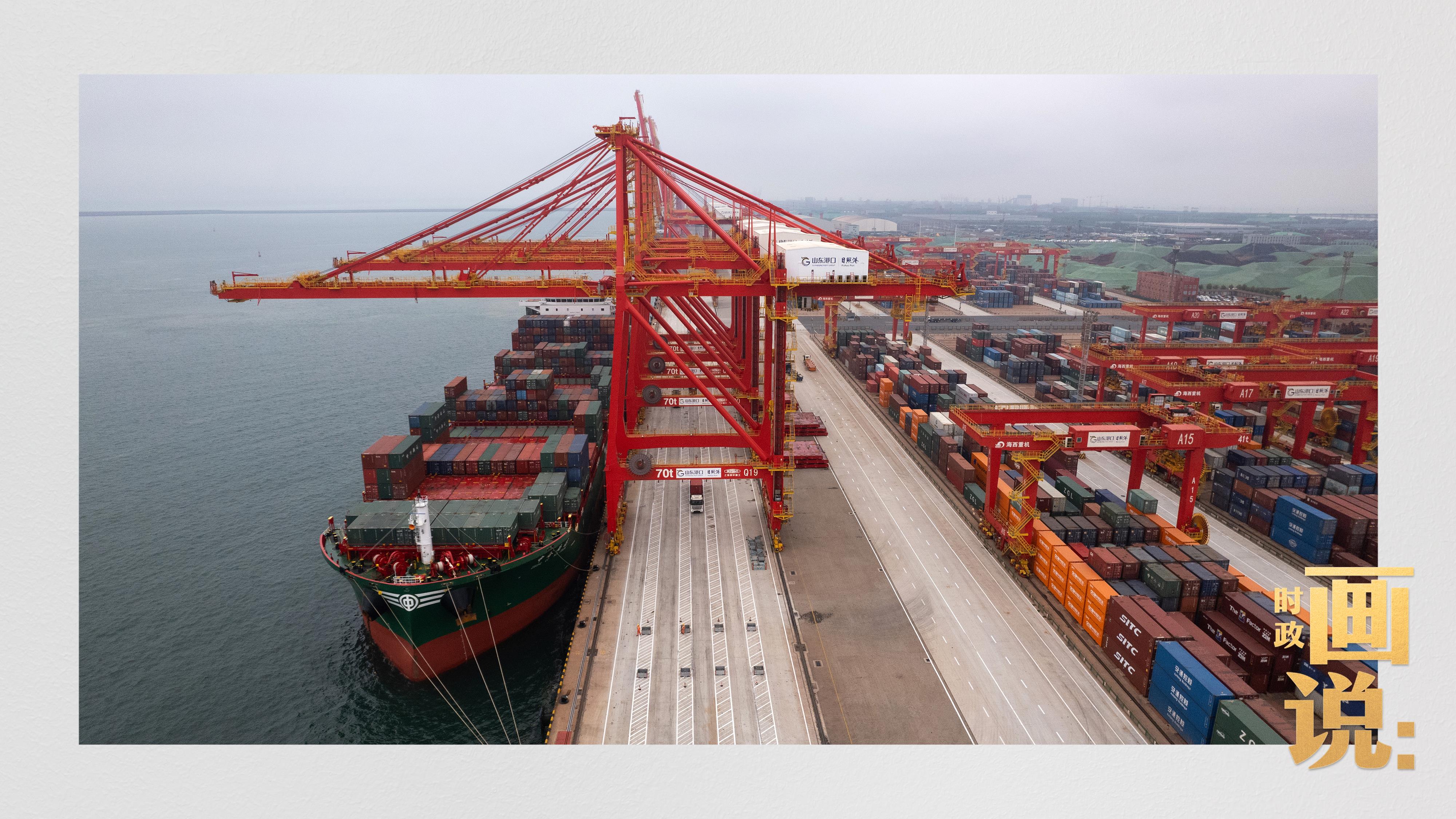 △山東港口集團(tuán)日照港石臼港區(qū)的全自動(dòng)化碼頭正在作業(yè)。近年來(lái),日照港大力推動(dòng)港口智慧化、綠色化發(fā)展,建成全球首個(gè)順岸開(kāi)放式全自動(dòng)化集裝箱碼頭。