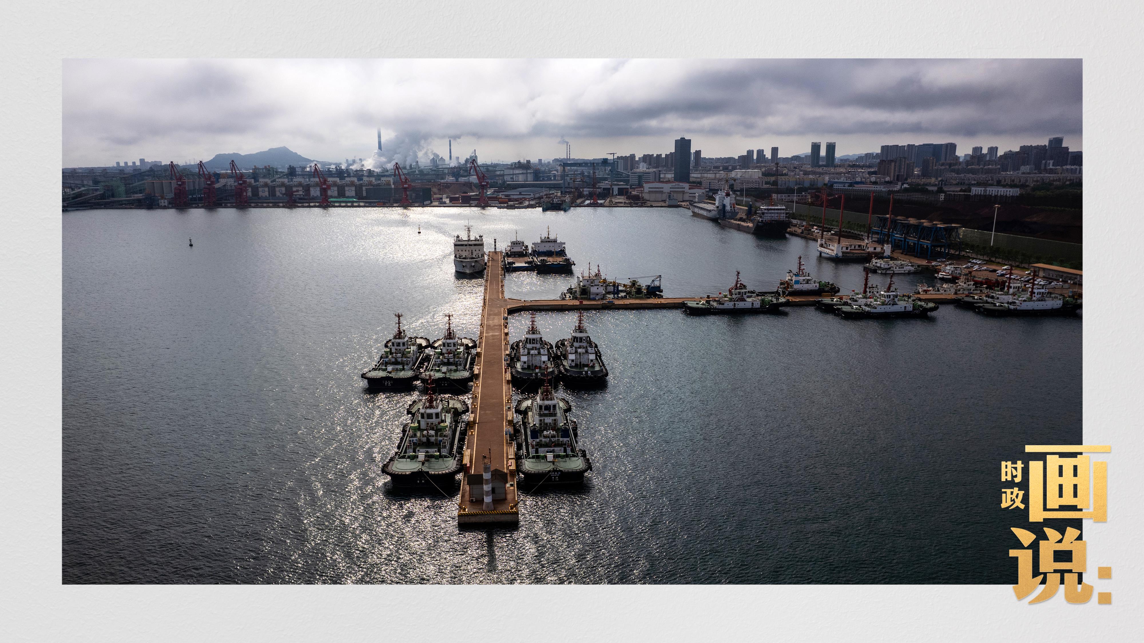 △陽(yáng)光穿越云層,灑落在港區(qū)內(nèi)待命的拖船碼頭。