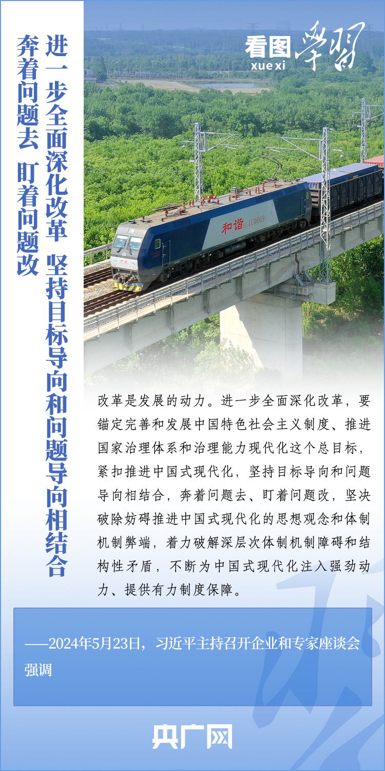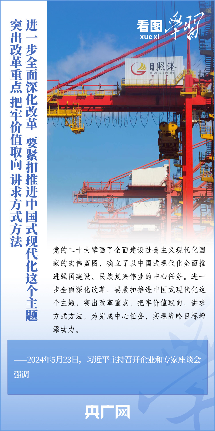 改革是發(fā)展的動力。5月23日,習(xí)近平總書記在山東濟(jì)南主持召開企業(yè)和專家座談會并發(fā)表重要講話。總書記強(qiáng)調(diào),進(jìn)一步全面深化改革,要緊扣推進(jìn)中國式現(xiàn)代化這個主題,突出改革重點,把牢價值取向,講求方式方法,為完成中心任務(wù)、實現(xiàn)戰(zhàn)略目標(biāo)增添動力。一起來學(xué)習(xí)!