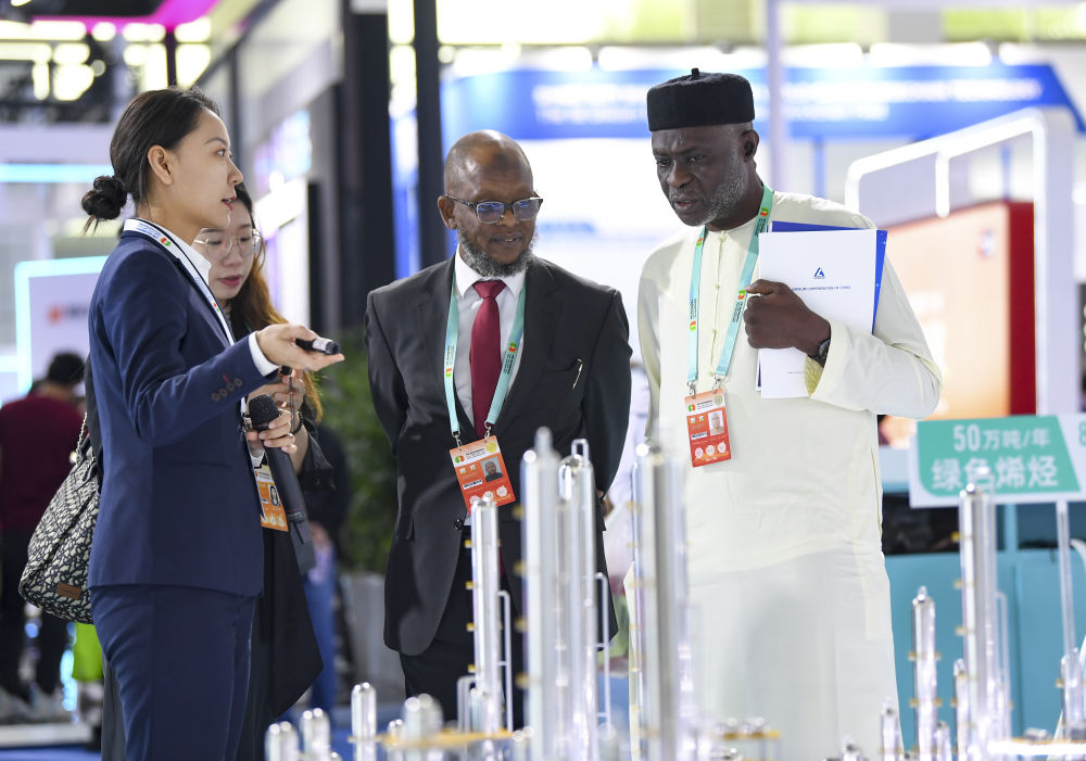 2023年9月22日,嘉賓在第六屆中阿博覽會上了解清潔能源項目。新華社記者 馮開華 攝
