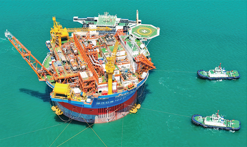 “海葵一號(hào)”,是亞洲首艘圓筒型浮式生產(chǎn)儲(chǔ)卸油裝置。該裝置集原油生產(chǎn)、存儲(chǔ)、外輸?shù)裙δ苡谝惑w,被網(wǎng)友們昵稱為“超級(jí)能源碗”,也是完全由我國自主設(shè)計(jì)建造的海上油氣加工廠。圖為2024年5月12日,“??惶?hào)”從中國海油青島國際化高端裝備制造基地離港啟運(yùn)。 人民圖片 張進(jìn)剛/攝