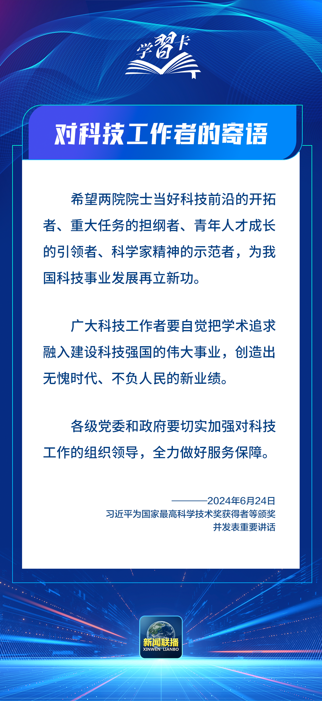 6月24日,中共中央總書記、國家主席、中央軍委主席習(xí)近平為國家最高科學(xué)技術(shù)獎(jiǎng)獲得者等頒獎(jiǎng)并發(fā)表重要講話。