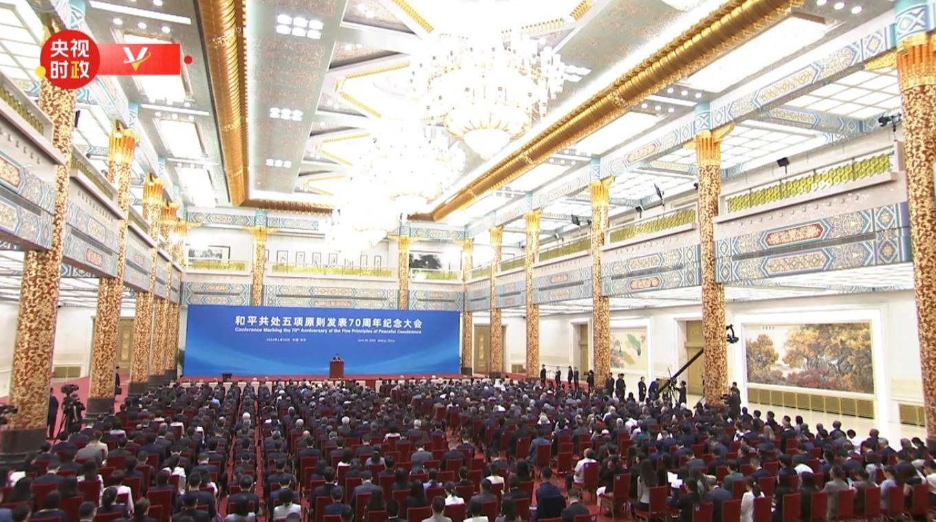 6月28日上午,和平共處五項(xiàng)原則發(fā)表70周年紀(jì)念大會在北京人民大會堂隆重舉行。國家主席習(xí)近平出席紀(jì)念大會并發(fā)表題為《弘揚(yáng)和平共處五項(xiàng)原則,攜手構(gòu)建人類命運(yùn)共同體》的重要講話。