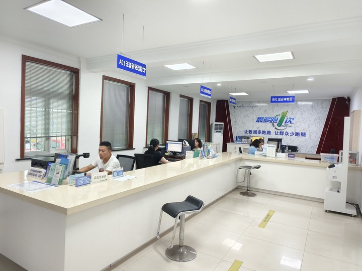 “您好,請(qǐng)問(wèn)有什么可以幫您?”面對(duì)前來(lái)辦事的群眾,工作人員微笑著詢問(wèn),沒(méi)有像銀行柜臺(tái)一樣的玻璃阻隔,大家面對(duì)面交流,格外順暢。