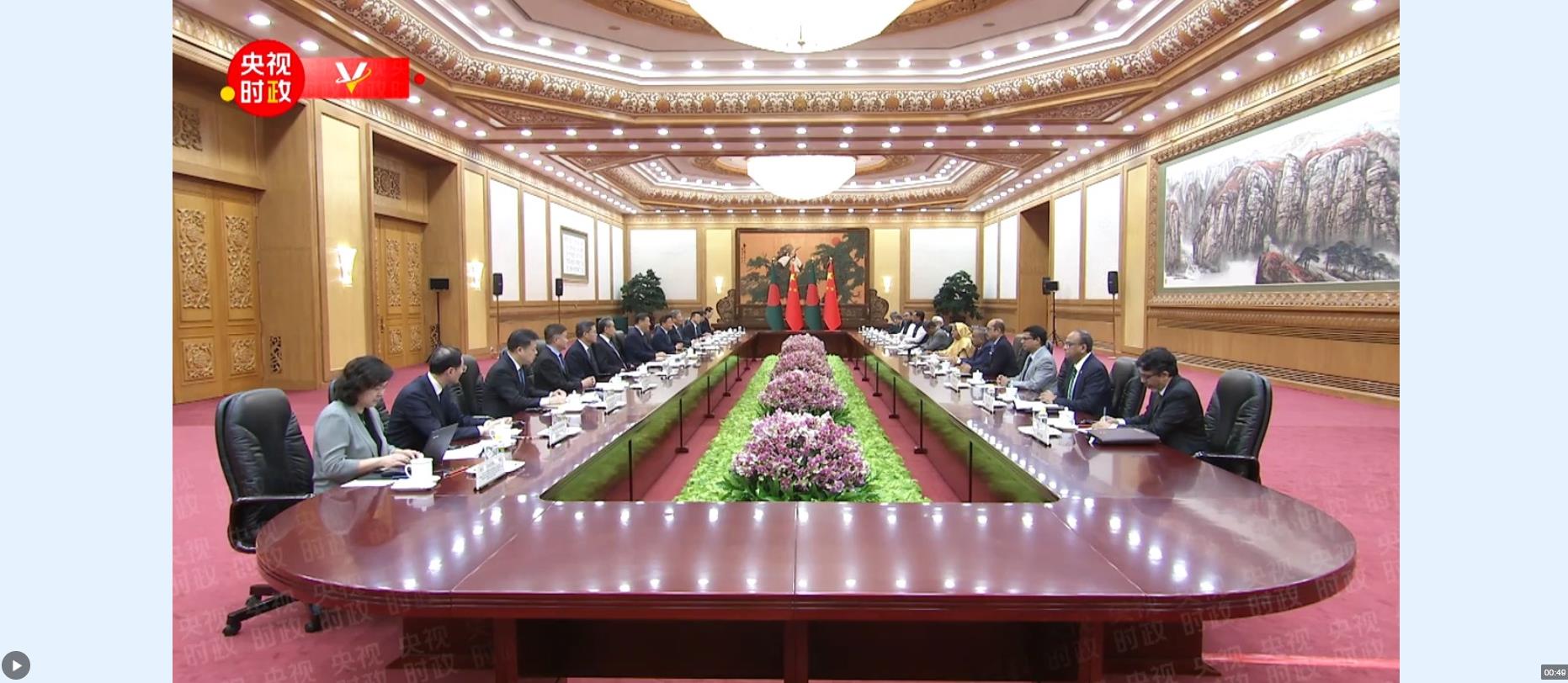 習(xí)近平指出,中方珍視中孟兩國(guó)老一輩領(lǐng)導(dǎo)人締造的深厚友誼。明年,我們將迎來(lái)中孟建交50周年。我愿同總理女士一道,從戰(zhàn)略高度和長(zhǎng)遠(yuǎn)角度擘畫和發(fā)展中孟關(guān)系,增進(jìn)政治互信,傳承傳統(tǒng)友誼,深化高質(zhì)量共建“一帶一路”和各領(lǐng)域合作,建立和推進(jìn)中孟全面戰(zhàn)略合作伙伴關(guān)系,為南亞地區(qū)和“全球南方”發(fā)展繁榮作出貢獻(xiàn)。