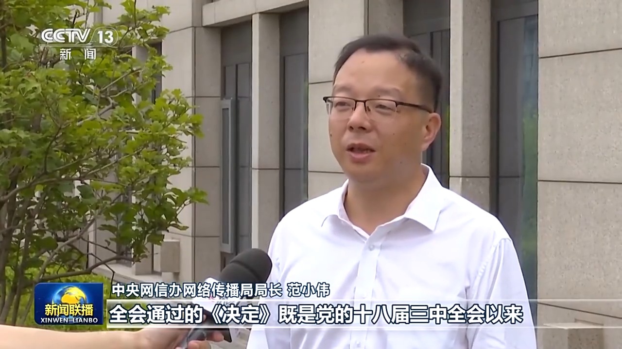 中央網(wǎng)信辦網(wǎng)絡(luò)傳播局局長 范小偉:全會通過的《決定》,既是黨的十八屆三中全會以來全面深化改革的實踐續(xù)篇,也是新時代新征程推進(jìn)中國式現(xiàn)代化的時代新篇。我們將深入學(xué)習(xí)貫徹全會精神,進(jìn)一步增強堅定擁護(hù)“兩個確立”、堅決做到“兩個維護(hù)”的政治自覺,適應(yīng)信息技術(shù)發(fā)展新形勢,不斷健全網(wǎng)絡(luò)綜合治理體系,進(jìn)一步加強網(wǎng)絡(luò)文明建設(shè),更好服務(wù)黨和國家工作大局。