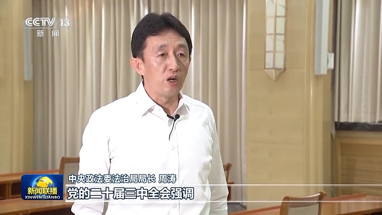 中央政法委法治局局長 周濤:黨的二十屆三中全會強調(diào),法治是中國式現(xiàn)代化的重要保障,進(jìn)一步全面深化政法改革,要協(xié)同推進(jìn)立法、執(zhí)法、司法、守法各環(huán)節(jié)改革,健全法律面前人人平等保障機(jī)制。我們將圍繞《決定》作出的改革部署,科學(xué)制定實施方案,全面貫徹落實習(xí)近平法治思想,更加注重改革和立法同步,更加注重系統(tǒng)集成、協(xié)同高效。