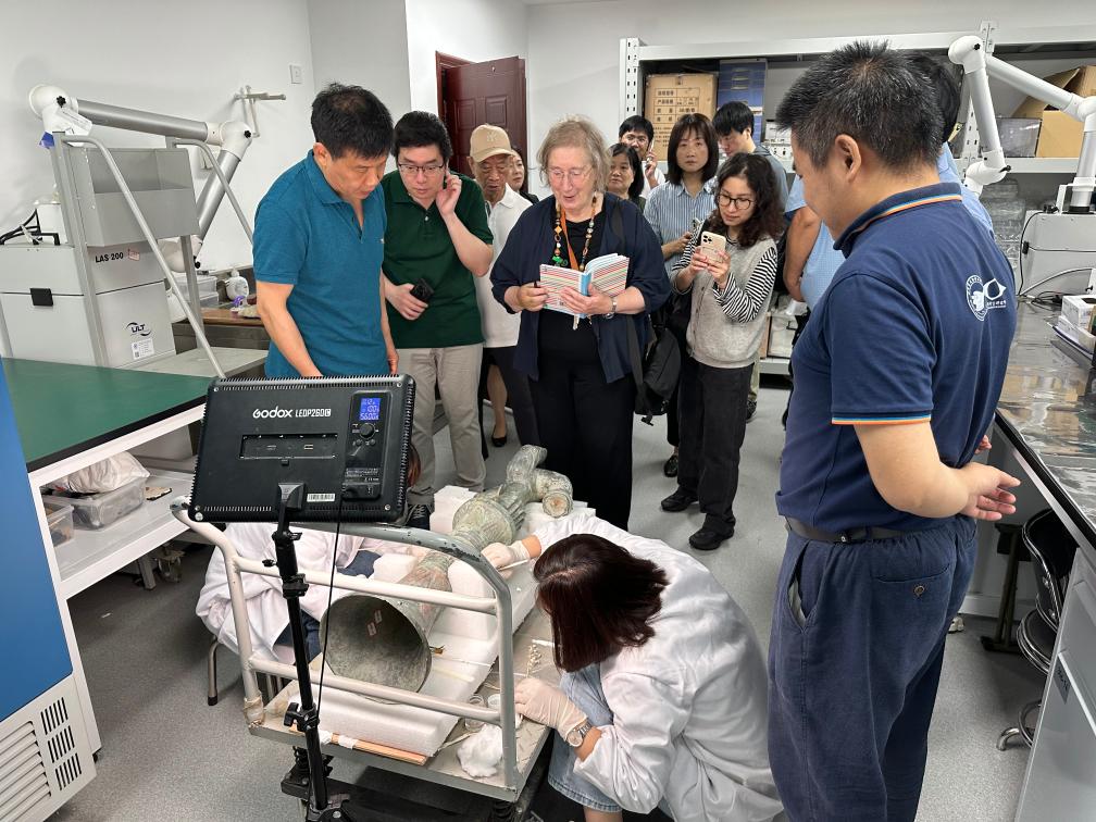 2024年5月28日,英國考古學家、牛津大學教授杰西卡·羅森在文物保護修復實驗室觀摩文物。新華社發(fā)(四川省文物考古研究院供圖)